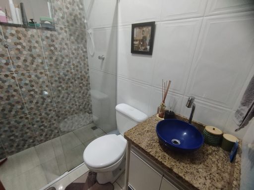 Linda casa em condomínio fechado, com 2 quartos, salas de estar e jantar integradas, cozinha planejada, área gourmet, quintal, área de serviço e 2 vagas de garagem.