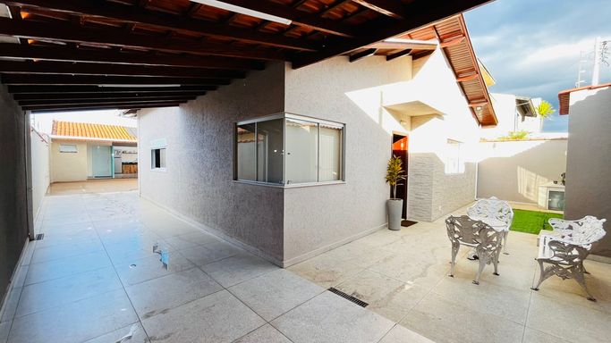 Uma casa construída com muito carinho, pensado em todos os detalhes, para quem ama reunir a fámilia, amigos, criar experiências incríveis, você irá encontrar um espaço externo com um quintal coberto por um telhado retrátil em alumínio, uma cozinha equipada com bancada em granito, fogão cook top, churrasqueira a carvão, fogão a lenha, banheiro e 1 quarto de apoio. No seu dia a dia podendo fazer todas as suas refeições fora do ambiente interno.
